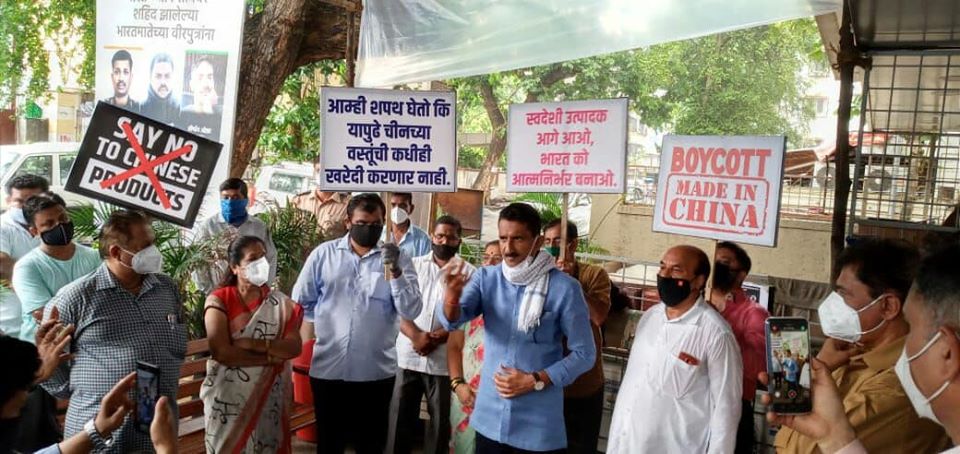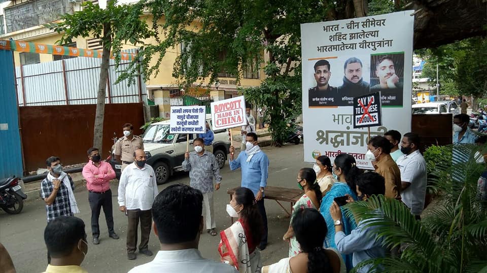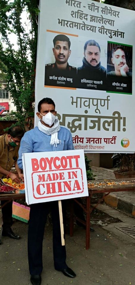 Shri. Sunil Rane paid tributes to the soldiers who were martyred in the clashes on the Indo-China border. Also pledged that we would no longer use Chinese goods. BJP Borivali Mandal post holders, corporators, ward presidents etc. were present outside BJP Borivali Office today.