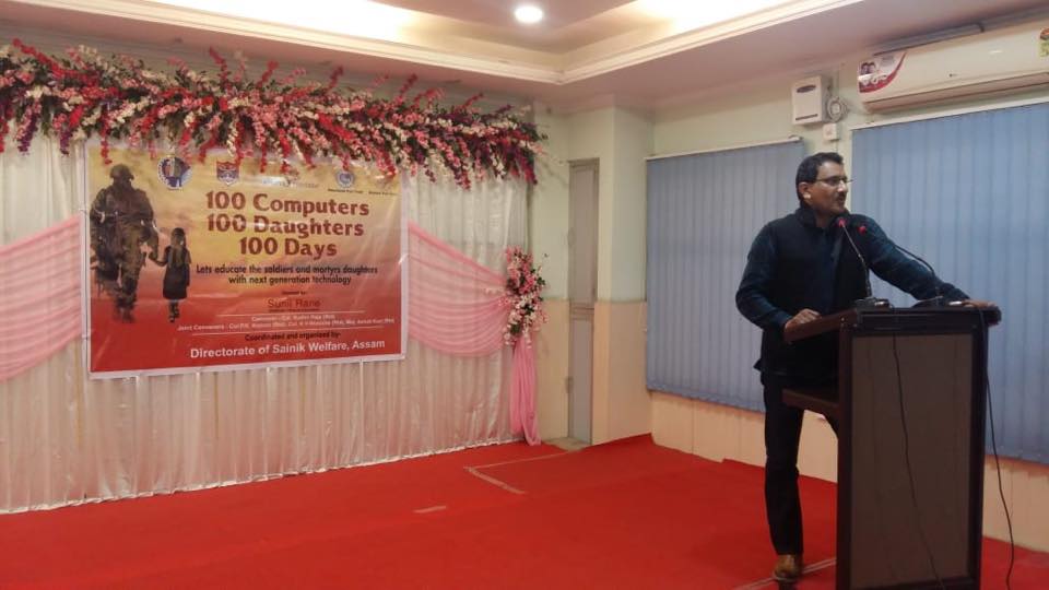 Shri. Sunil Rane under the initiative of the Atharva Foundation, '100 computers 100 daughters 100 days' distributed laptops to the daughters of Martyrs at Zilla Sainik Board to provide them educational support organized by Ex-service men's welfare association, Assam.