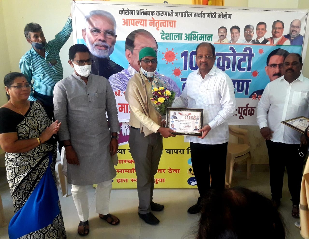 The Bharatiya Janata Party, Borivali Legislative Assembly today honored Covid Worriers in Ward No. 14, Borivali (E) for their contribution in achieving 100 crore vaccination target of Honorable Prime Minister of India Shri.Narendra Modi.