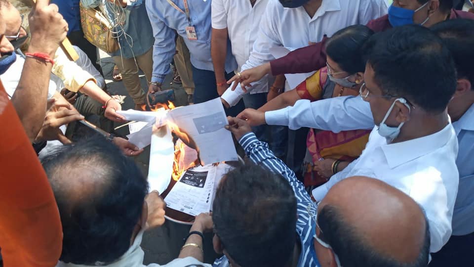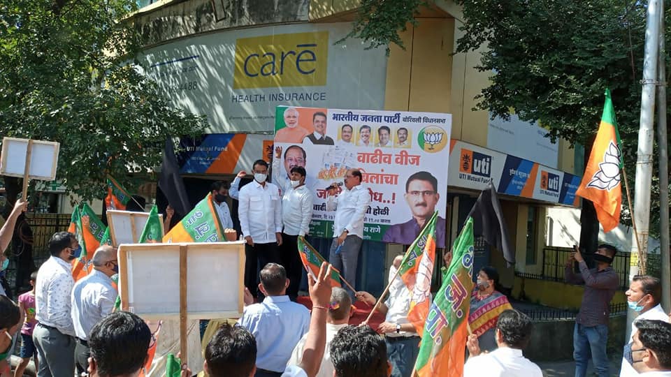 The Bhartiya Janata Party in Borivali West staged a protest against the hike in electricity bills, today. A large number of citizens and Karyakartas showed their presence and registered their strong protest.