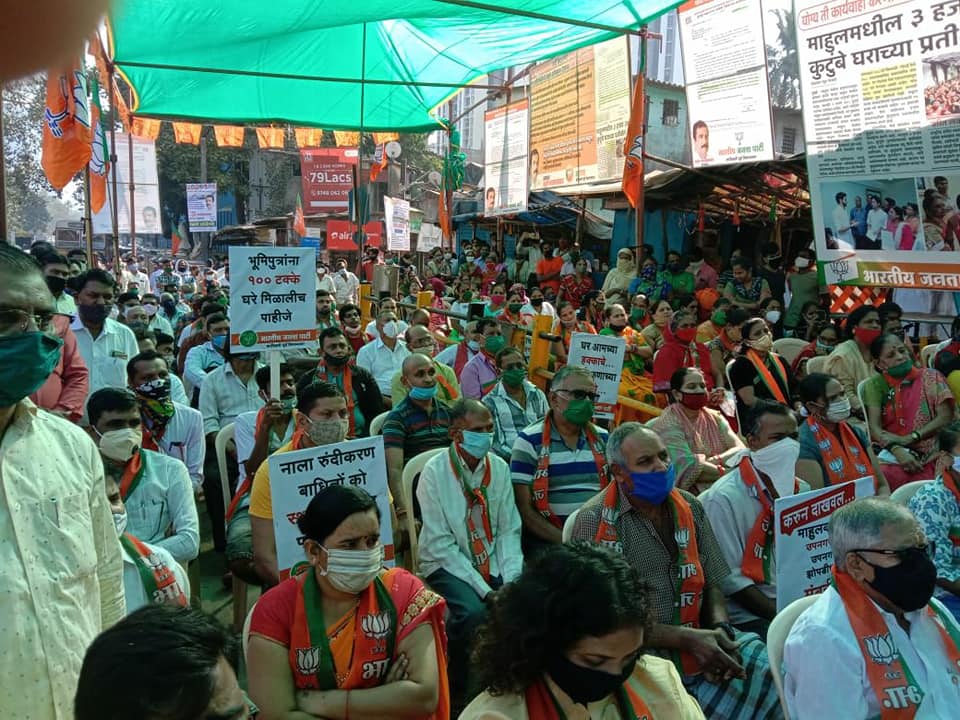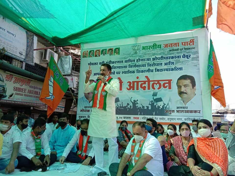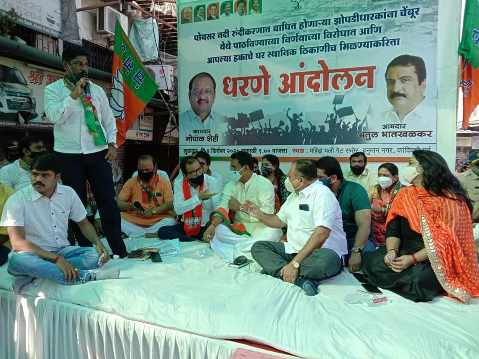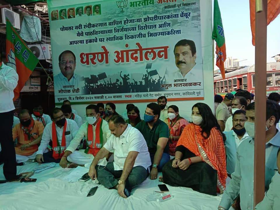 Today in Kandivali East, participated in the Dharne Andolan, a protest against the decision to send slum dwellers to Chembur who were affected by the widening of the Poisar River and to help them get their houses back.